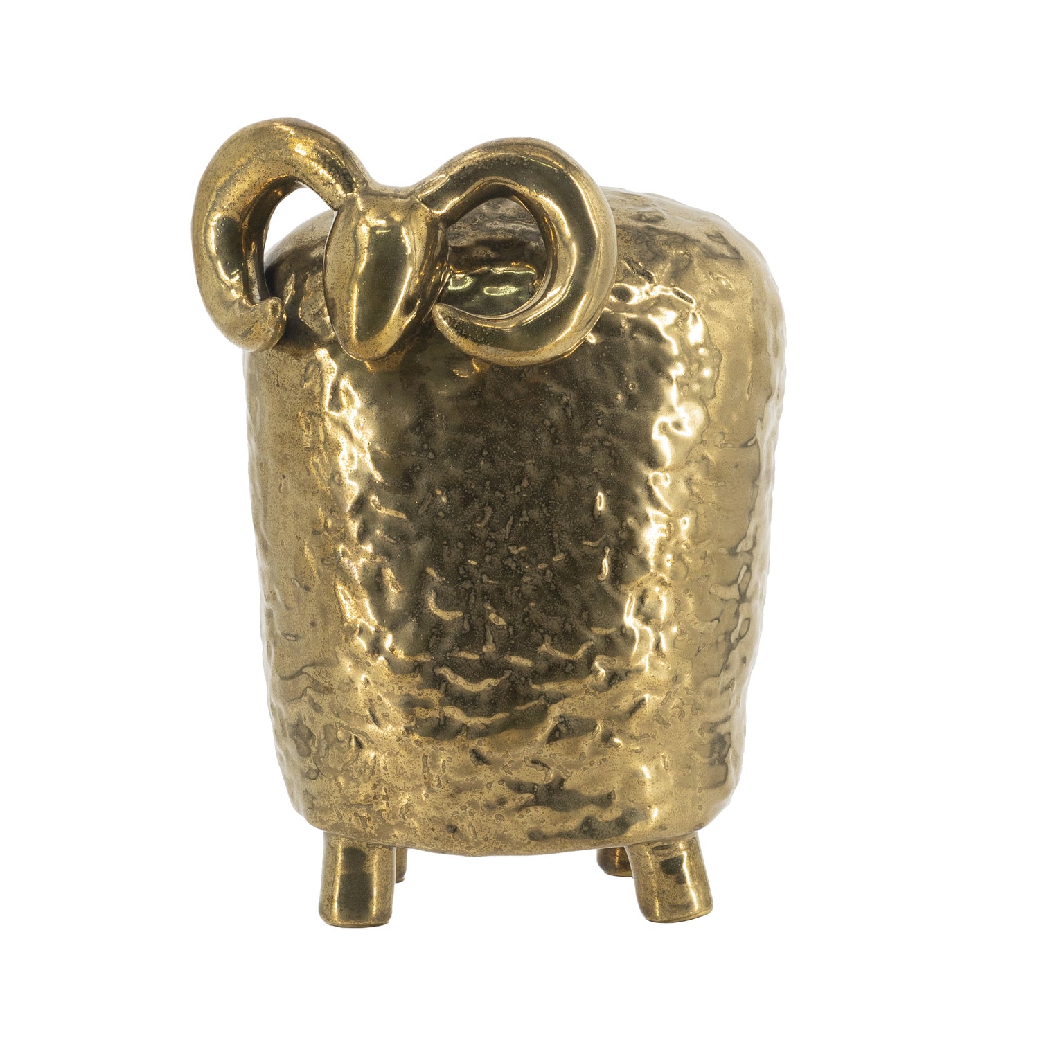 Añade un toque de lujo y fantasía a tu espacio con esta escultura de carnero de cerámica artesanal, con un cuerpo abstracto y regordete, cuernos curvados y un acabado dorado martillado que le da un brillo texturizado. Es perfecta para escritorios, estanterías o repisas, combinando el encanto rústico de una granja con la elegancia moderna. Ideal como decoración o regalo para los amantes de Aries, evoca fuerza y arte en un formato compacto y llamativo.