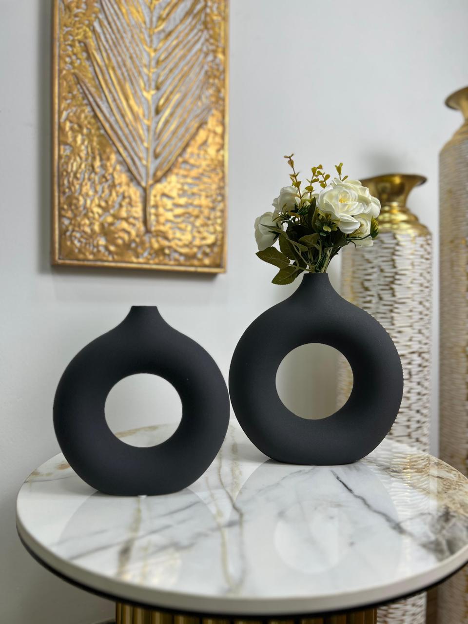 Florero Redondo Negro en Resina, Perfecto para aquellos que buscan un estilo moderno y natural. Material:Resina Tono:Negro